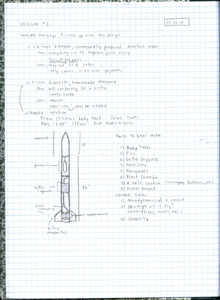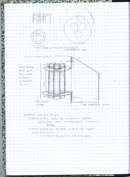 Below are some of the notes, designs, etc. for this rocket. I spent a long time iterating, going through even more designs than are available below.